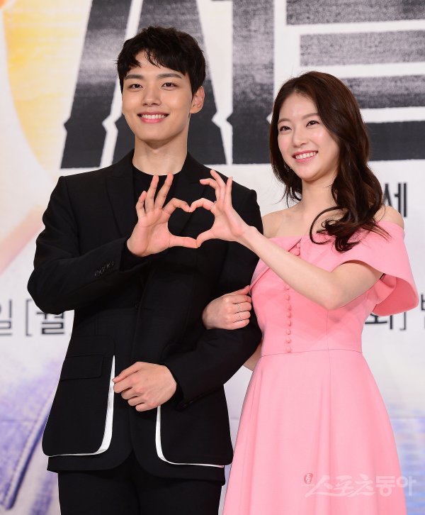 17일 서울 영등포 타임스퀘어 내 아모리스에서 tvN 월화드라마 ‘써클, 이어진 두 세계’ 제작발표회가 열렸다. 배우 여진구와 공승연(오른쪽)이 포토타임에서 포즈를 취하고 있다.