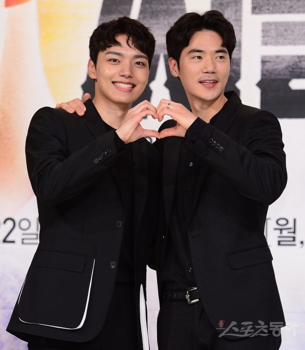 17일 서울 영등포 타임스퀘어 내 아모리스에서 tvN 월화드라마 ‘써클, 이어진 두 세계’ 제작발표회가 열렸다. 배우 여진구와 김강우(오른쪽)가 포토타임에서 포즈를 취하고 있다.