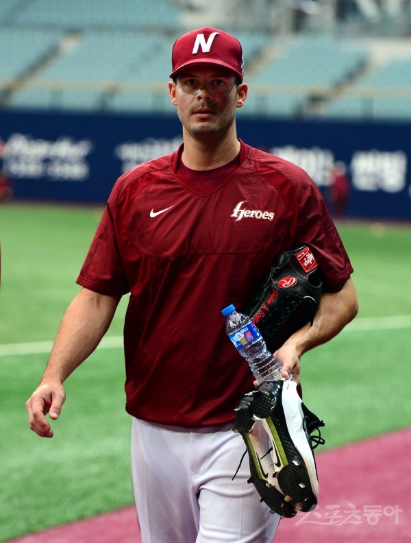 17일 서울 고척스카이돔에서 ‘2017 타이어뱅크 KBO리그’ 넥센 히어로즈와 한화 이글스의 경기가 열린다. 경기전 넥센 새 용병 투수 제이크 브리검이 훈련을 마치고 그라운드를 빠져나가고 있다.