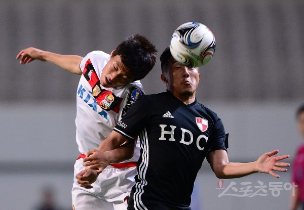 17일 서울월드컵경기장에서 2017 KEB 하나은행 FA컵 16강전 FC서울과 부산아이파크의 경기가 열렸다. 후반 FC서울 심상민과 부산아이파크 야스다(오른쪽)가 헤딩 경합을 벌이고 있다.