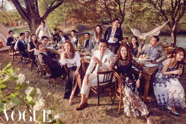 때늦은 한기가 걷힌 4월의 어느 날, 용인의 한 캠핑장에서 진행된 이번 보그 화보에서는 베일에 싸여 있던 ‘아티스트컴퍼니’ 이정재, 정우성, 하정우와 염정아, 고아라, 김의성, 배성우, 이솜, 정원중, 신정근, 한성천, 민무제, 차래형, 손민호, 장우혁, 김윤식, 남지현, 이시아, 김세린 19인이 모두 모여 만찬을 나누는 이색적인 풍경을 포착했다.