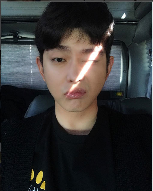윤균상은 눈 한쪽을 감은 채 사진을 찍었다.