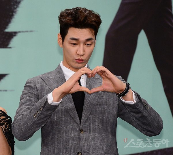 19일 서울 마포구 상암동 MBC 골든마우스홀에서 새 MBC TV 월화드라마 ‘파수꾼’ 제작발표회가 열렸다. 배우 김영광이 포토타임에서 하트 포즈를 취하기 위해 집중하고 있다.