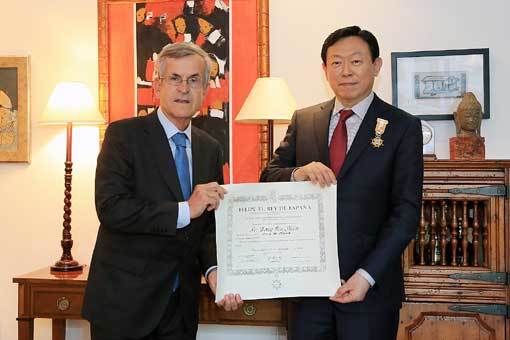 한국과 스페인 간 경제 협력에 높은 관심을 기울이고 있는 것은 물론, 향후 스페인 경제 발전에 더 큰 역할을 할 것이 기대되는 기업가로 인정받아 훈장을 받게됐다는 게 회사 측 설명이다.