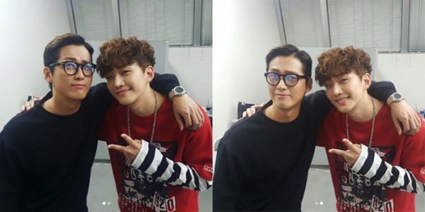 사진 속 둘은 다정하게 어깨동무를 하고선 카메라를 향해 포즈를 취했다. 남궁민은 준호를 응원하기 위해 \'k-pop 콘서트\'장을 방문했다.