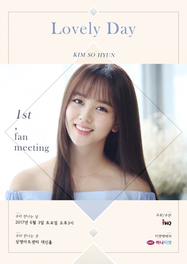 이렇게 데뷔 9년만에 처음으로 개최되는 KIM SO HYUN 1ST fanmeeting ‘Lovely Day’ 티켓팅은 오늘 22일 저녁 8시 공식예매처 하나티켓을 통해 진행될 예정이다.