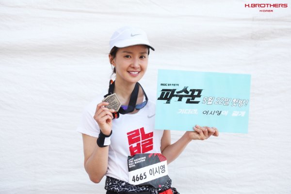 사진 속 이시영은 마라톤 완주 이후 ‘파수꾼’의 첫 방송 소식을 알린 피켓을 들고는 환하게 웃고 있다. 작품을 향한 애정과 열정이 고스란히 전달된 것. 이날 이시영은 서울 도심을 지나 올림픽 공원으로 도착하는 21km코스를 두 시간 여 만에 완주하는데 성공했다.