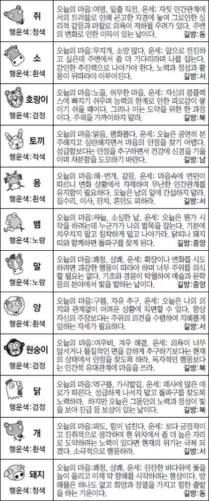 ▲ 오늘의 운세 도표. 스포츠동아