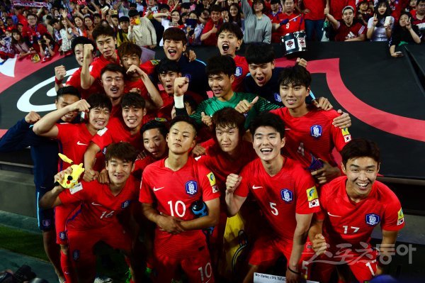 23일 전주월드컵경기장에서 ‘2017 FIFA U-20 월드컵’ 한국과 아르헨티나의 A조 예선 경기가 열렸다. 한국이 아르헨티나에 2-1로 승리하며 16강 진출을 확정지은 뒤 팬들과 기념촬영을 하고 있다.