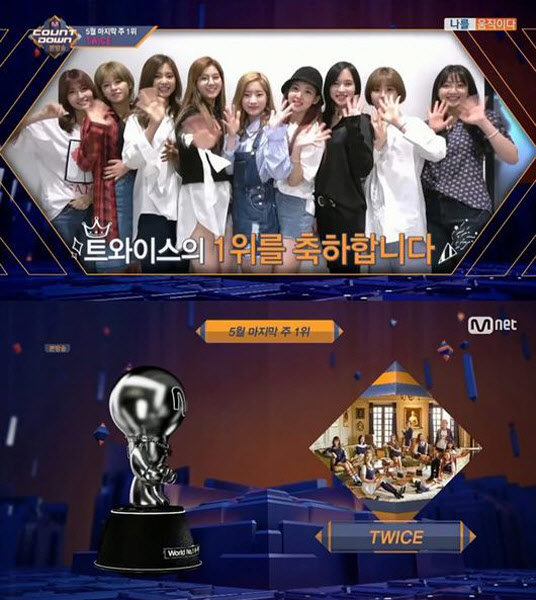 트와이스는 24일 MBC뮤직 '쇼챔피언'에 이어 두 번째로 1위를 차지했다. 트와이스는 미리 준비된 영상을 통해 "'시그널' 만들어주신 박진영 PD님 감사드린다. 팬들 정말 감사드린다"는 소감을 남겼다.