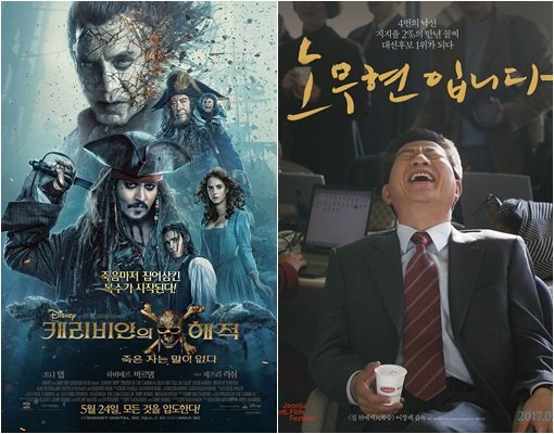 이번주에 개봉한 ‘캐리비안 해적 : 죽은 자는 말이 없다’와 ‘노무현입니다’가 박스오피스 1,2위를 차지했다.