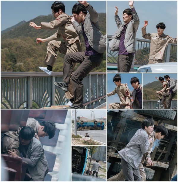 이와 관련 정재영과 양세종이 극한의 ‘피투성이 케미’를 발산하는 추격 장면을 펼쳐, 이목을 집중시키고 있다. 극중 전복된 채 연기를 뿜어내는 버스 차량을 바라보던 득천(정재영)이 그 안에서 수의를 입은 채 피범벅 상태로 쓰러져 있는 성준(양세종)을 들쳐 업고 나와 도망치는 장면. 이어 긴박감 넘치는 추격전을 벌이던 두 사람은 막다른 길에 이르자, 손을 들고 항복 자세를 취하다, 끝내 다리 위에서 몸을 내던지는 스펙터클한 장면을 연출했다.