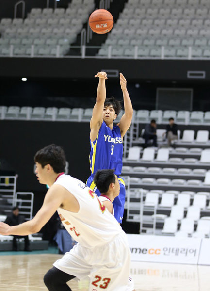 가장 눈에 띄었던 선수는 전형준(19)이었다. 1학년인 전형준은 이날 15분여만 뛰고도 3점슛 4개 포함 16점을 쏟아냈다. 전형준이 외곽에서 힘을 보내면서 연세대는 3~4쿼터에 뒷심을 발휘할 수 있었고, 골밑 위주의 플레이를 펼친 한양대의 맹추격을 뿌리 칠 수 있었다. 은 감독은 “(전)형준이가 내가 말한 케이스가 될 수 있을 것 같다. 오늘 찾아온 기회를 확실히 잘 잡았다”라고 칭찬했다.