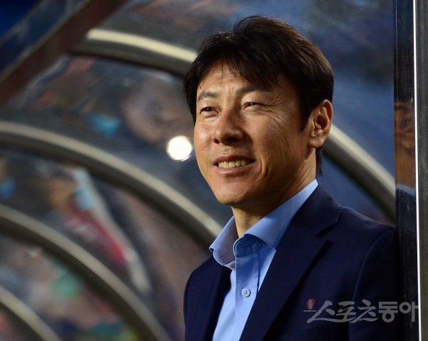 경기를 앞두고 대한민국 신태용 감독이 그라운드를 응시하며 미소짓고 있다.