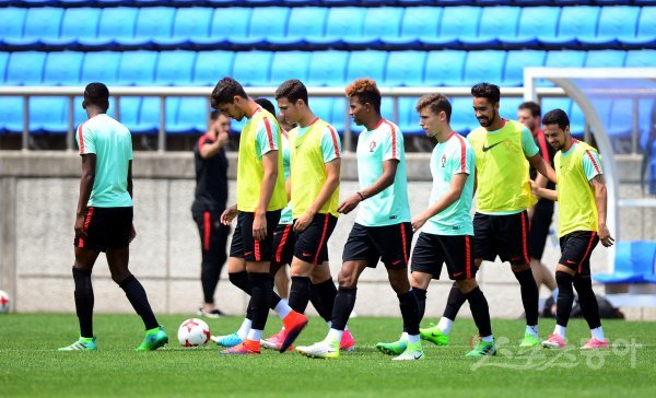 포르투칼 U-20 축구대표팀이 29일 천안 축구센터에서 ‘2017 FIFA U-20 월드컵’ 한국과의 16강 경기를 앞두고 훈련을 가졌다. 포르투칼 선수들이 훈련장으로 들어서고 있다.