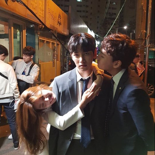 SBS 수목드라마 ‘수상한 파트너’의 지창욱(가운데)을 차지하기 위한 애정 표현일까. 지창욱의 표정이 밝은 모습의 남지현과 최태준 ‘애교’에 힘겨워 보인다. 남지현은 지창욱 어깨에 매달려 있고, 최태준은 지창욱의 볼에 뽀뽀를 하려 가까이 다가가 있다. 사진을 보니 다음 상황이 더욱 궁금해지는 이유는? 과연 최태준의 입술은 지창욱의 볼에 닿았을까.