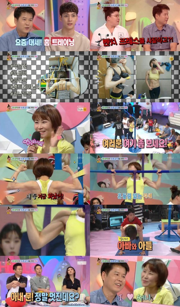이를 듣던 이영자는 "그럼 아내의 운동을 직접 보여달라"라고 말했고, 아내는 스튜디오에서 이소룡급 근육과 탁월한 운동실력을 선보여 시선을 모았다.
