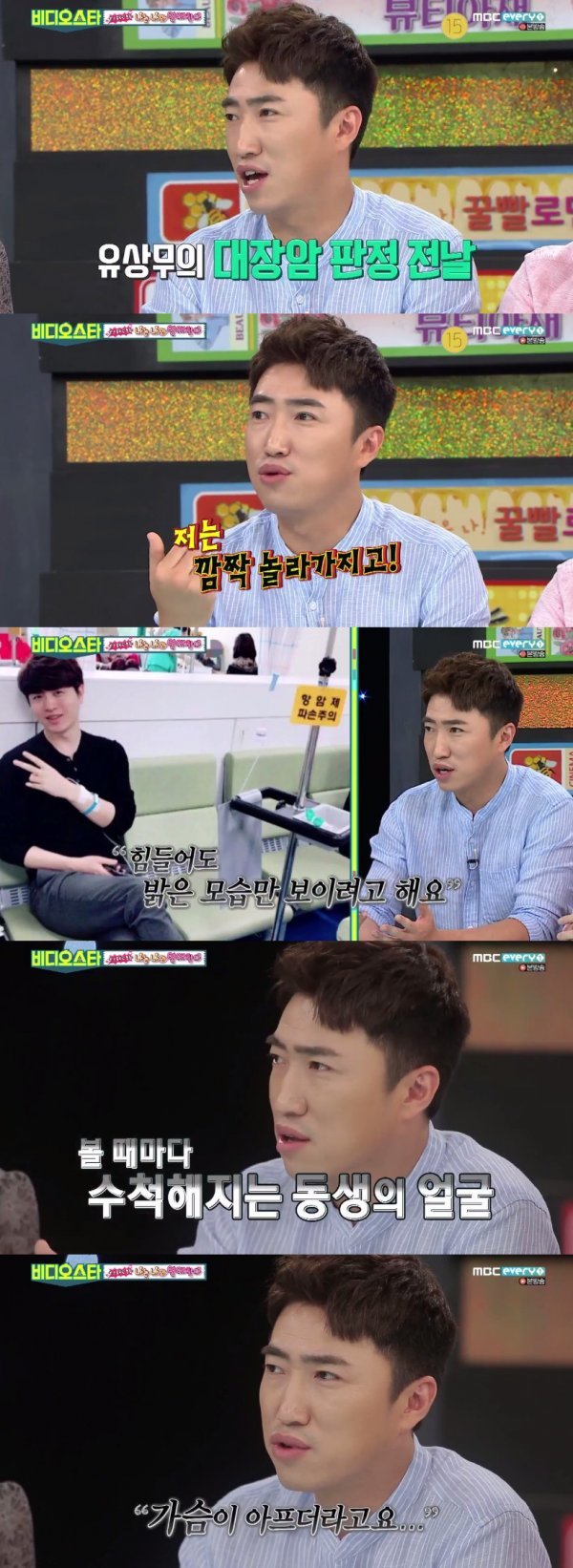 ‘비디오스타’ 장동민이 유상무의 대장암 투병에 대해 안타까운 마음을 표현했다.