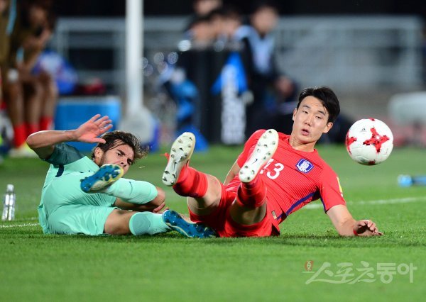 30일 천안종합동장에서 '2017 FIFA U-20 월드컵' 한국과 포르투갈의 16강 경기가 열렸다. 한국 이유현이 포르투갈 선수와 볼다툼을 벌이고 있다.