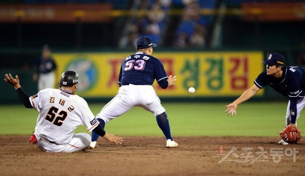 실책 류지혁 ‘2루로 송구했지만 늦었네’