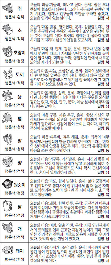 ▲ 오늘의 운세 도표. 스포츠동아