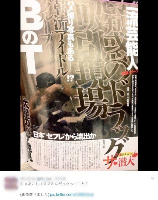 1일 대만 매체인 ET투데이는 일본의 모 주간지가 한 남성이 마약을 하는 모습이 담긴 사진을 보도했다고 전했다. 해당 주간지는 ‘한류 아이돌 마약현장’이라고 강조하며 “사진은 한국 톱 아이돌 그룹 B의 멤버로, 자세한 상황은 알 수 없지만 호텔에서 찍힌 것이다”고 보도했다.