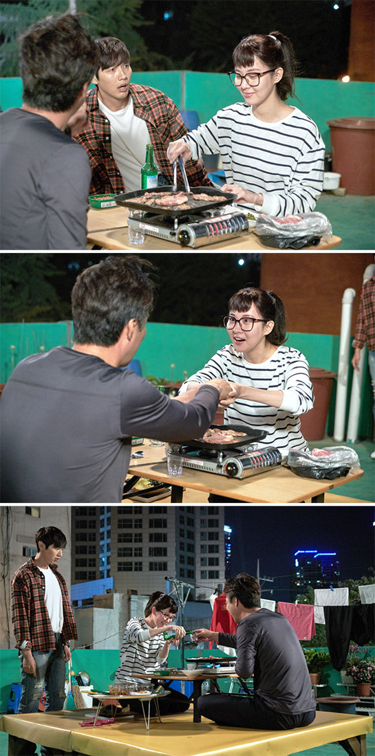 공개된 사진 속에는 강소주와 장판수가 즐거운 저녁 식사를 하는 모습이 담겨있다. 화기애애한 분위기가 인상적으로 휴대용 가스렌지 위에 고기를 굽고 있는 강소주의 행복한 표정이 시선을 사로잡는다. 이를 탐탐치 않은 표정으로 바라보는 장돌목의 모습이 함께 포착돼 흥미진진한 전개를 예고하고 있다. 어떤 사연으로 강소주가 장돌목의 집에 찾아온 것인지 궁금증이 더해지고 있다.