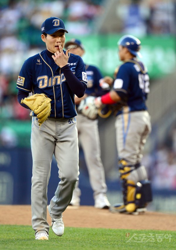 4일 잠실야구장에서 ‘2017 타이어뱅크 KBO 리그’ NC다이노스와 LG트윈스의 경기가 열렸다. 선발 투수로 등판한 NC 이재학이 5회말 1사 2,3루 상황에서 강판되고 있다.