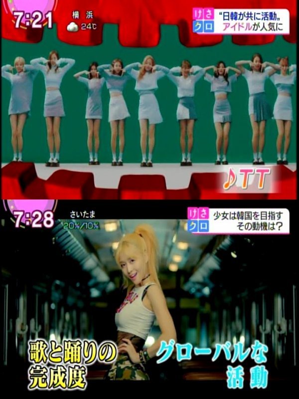 이날 방송은 한국과 일본에서 인기몰이중인 트와이스 및 K팝을 동경하여 스스로도 K팝 가수가 되기 위해 오디션을 보고 있는 여학생의 사연 등이 전파를 탔다. 방송에서는 트와이스에 대해 "한국 걸그룹 중 현재 가장 인기 있는 그룹으로 멤버중 사나, 미나, 모모 등 일본인 3명도 포함돼 있다"면서 "지난해 사나가 부른 노래 파트인 '샤샤샤'가 열풍을 불러 일으켰다"고 소개했다.
