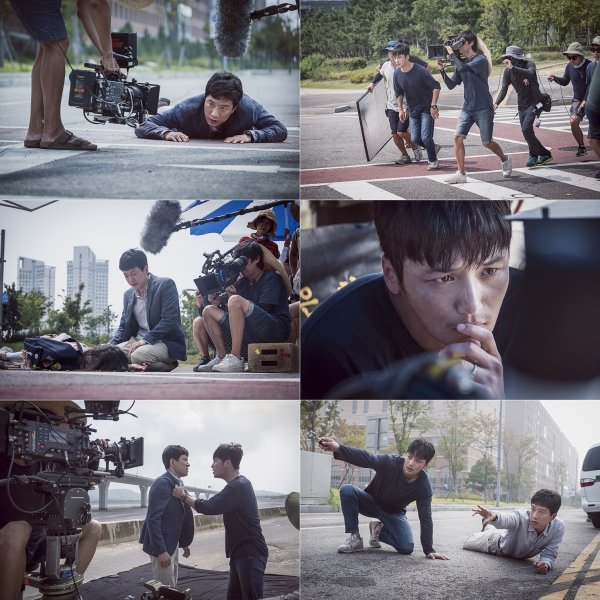 공개된 스틸에서는 불볕더위에 맞서 몸과 마음을 내던졌던 김명민, 변요한의 모습을 만나볼 수 있다. 먼저 김명민은 뜨거운 태양빛의 복사열로 아스팔트가 38~39도까지 올라 화상 위험에 노출되어있는 상황에도 불구하고 도로 한가운데 엎드리며 몸을 사리지 않았다. 뿐만 아니라 딸 ‘은정’(조은형)의 사고 현장을 목격하고 오열하는 장면에서는 눈에 실핏줄이 터질 정도로 온 마음을 다해 연기를 펼친 김명민. 변요한이 “현장의 발판을 만들어주셨다”고 전할 정도로 그는 연기를 위해서라면 극한의 상황 앞에도 두려움 없이 바로 몸을 내던져 현장 스태프들을 놀라게 했다.