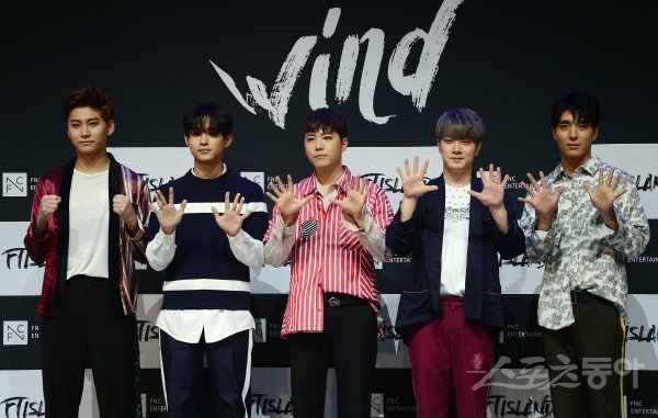7일 서울 광진구 YES24 무브홀에서 FT아일랜드 데뷔 10주년 기념 앨범 쇼케이스가 열렸다. FT아일랜드가 포토타임을 가지고 있다. 왼쪽부터 송승현, 이재진, 이홍기, 최민환, 최종훈.