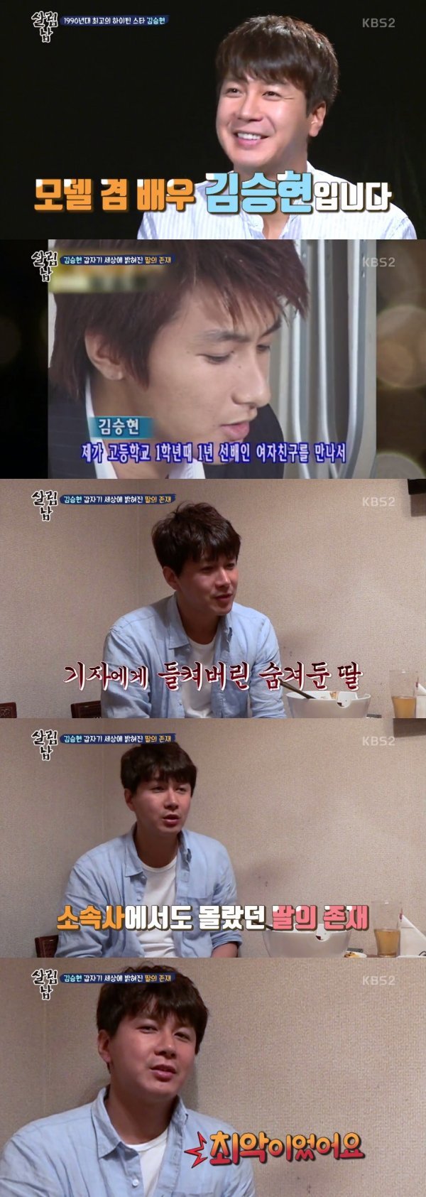이날 김승현은 “18살에 데뷔를 했다. 한창 인기를 받고 팬도 생겼다. 열심히 활동을 하다가”라고 하며 과거 여자친구의 임신 소식을 듣고 이를 공개적으로 자신이 발표하는 과거의 방송 장면이 공개됐다.