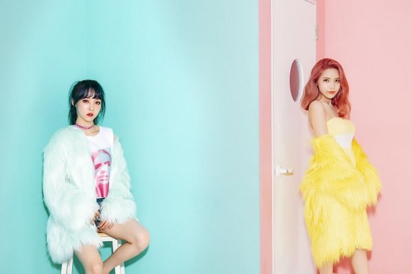 공개된 사진 속 솔라와 문별은 파스텔톤의 배경에서 화려한 퍼 코트로 시선을 사로잡는다. 솔라는 핑크색 컬러의 헤어스타일과 노란색의 퍼 코트를 걸치고 기분 좋아지는 미소와 깜찍한 포즈로 사랑스러운 매력을 자랑한다.