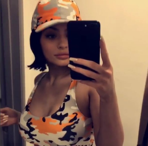 카일리 제너는 최근 자신의 인스타그램에 위장 무늬를 입힌 스냅백과 비키니 상하의를 입은 동영상을 게재했다.