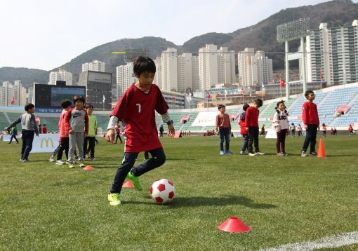 경기에 앞서 부산 구덕 운동장이 아이들의 재능을 자랑하는 한마당이 된다. 부산은 지난 5월 28일 펼쳐진 경기에서 호국 보훈과 축구장이라는 두 가지 테마로 어린이 사생대회를 개최했다.