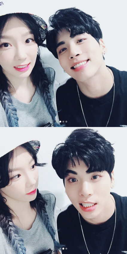 사진 속 태연은 종현과 함께 카메라를 향해 미소짓거나 장난스러운 표정을 짓는 종현을 바라보고 있다. 서로를 응원하며 돈독한 우정을 보여주는 둘의 모습이 훈훈해 보인다.