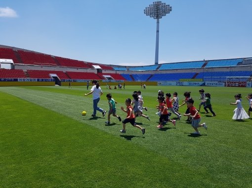 경기장을 방문한 어린이집 원생들은 선수들이 경기준비를 하는 락커룸에서 선수들이 경기를 어떻게 준비하고 하프타임에는 무엇을 하는지 그리고 평소 축구에 대해 궁금했던 점을 묻고 답하는 시간을 가졌다.