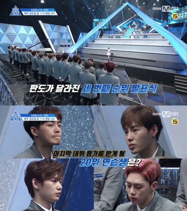 금일 방송에서는 연습생들의 세 번째 순위 발표식이 공개된다. 방송을 앞두고 공개된 예고편에서는 “집계 잘못된 거 아니죠?”, “베네핏 받고 저 등수인 게 너무 충격이다”라는 연습생들의 반응이 담겨있어 이번 순위에 이변이 있었음을 짐작하게 하고 있다.