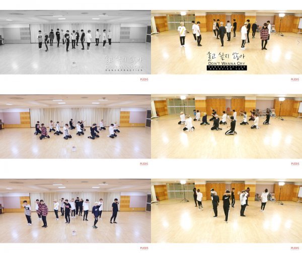 그룹 세븐틴이 네 번째 미니앨범의 타이틀곡 ‘울고 싶지 않아’의 안무 연습 영상을 공개했다.