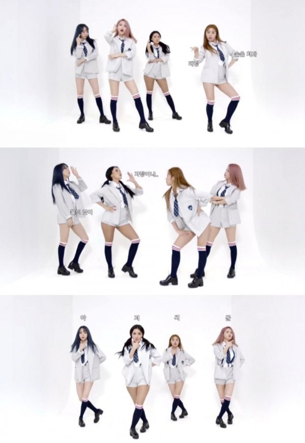 공개된 영상 속에는 깜찍 발랄한 스쿨걸로 변신한 마마무가 새 앨범의 수록곡 \'아재개그\'의 가사에 맞춰 재치있는 안무를 선보였다.