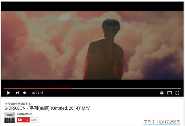 지드래곤의 신곡 ‘무제’ 뮤직비디오가 이틀여 만에 1천만뷰를 돌파하며 뜨거운 인기몰이를 이어가고 있다.