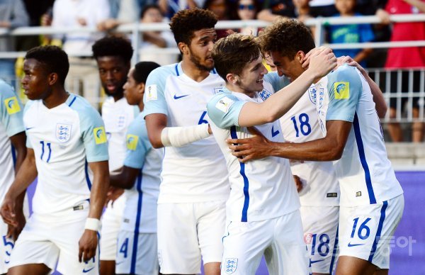 11일 수원 월드컵경기장에서 ‘2017 FIFA U-20 월드컵’ 잉글랜드와 베네수엘라의 결승전 경기가 열렸다. 잉글랜드 도미닉 칼버트-르윈(16)이 골을 성공시킨 뒤 동료들과 기쁨을 나누고 있다.