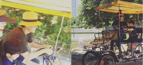 사진 속 유지태, 김효진, 그리고 수인이는 서울 올림픽 공원에서 사륜자전거를 타며 시간을 보내고 있는 모습. 밀짚모자를 쓰고 아들과 함께 열심히 페달을 밟는 유지태의 모습이 훈훈함을 자아낸다. 세 사람은 마치 영화 속 한 장면 같은 분위기를 내뿜고 있다.