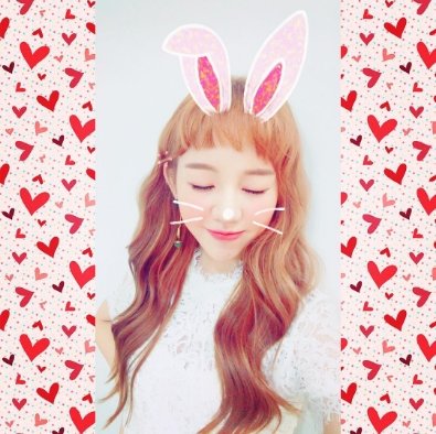 사진 속 백아연은 카메라 어플을 이용해 토끼 귀와 코를 합성했다. 깜찍한 모습이 인상적이다.