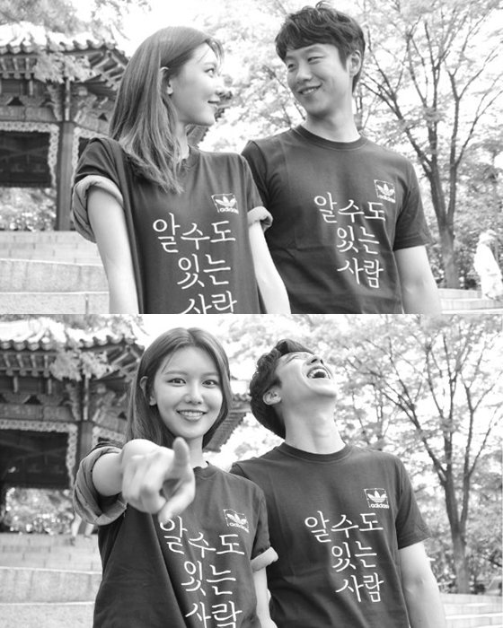 사진 속 수영과 심희섭은 ‘알 수도 있는 사람’이라고 적혀 있는 커플 티셔츠를 입고 다정하게 눈빛을 교환하고 있다. 또 수영은 카메라를 손가락으로 가리키고, 심효섭은 호탕하게 웃고 있는 모습이 마치 한 폭의 그림처럼 훈훈하다.