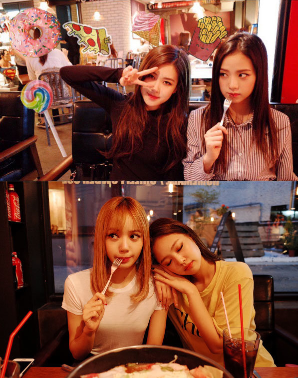 사진에는 식사를 즐기고 있는 블랙핑크 멤버들의 모습이 담겨져 있다. 리사와 지수는 포크를 입에 문 채 어딘가를 응시하는 엉뚱한 표정으로 귀여운 매력을 뽐냈다. 리사의 어깨에 다소곳이 기대어 있는 제니 또한 눈길을 사로잡는다. 네 명의 멤버들은 여전히 상큼하고 우월한 미모를 자랑한다.
