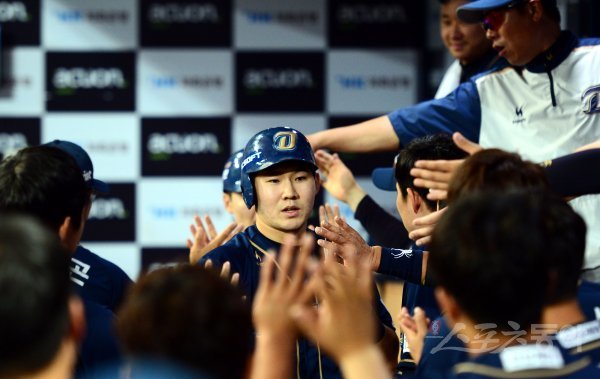 박민우 ‘득점하고 받는 환영은 언제나 즐거워’