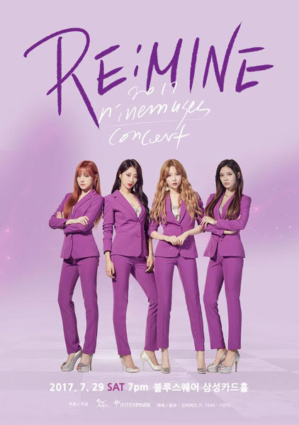 13일 소속사 스타제국에 따르면 나인뮤지스는 7월29일 오후 7시 서울 한남동 블루스퀘어 삼성카드홀에서 ‘2017 나인뮤지스 콘서트-리마인’을 벌인다.