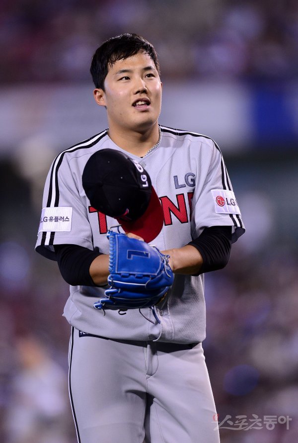 13일 잠실야구장에서 ‘2017 타이어뱅크 KBO 리그’ LG트윈스와 두산베어스의 경기가 열렸다. 선발 투수로 등판한 LG 임찬규가 6회말 2사 1,2루 상황에서 교체되고 있다.