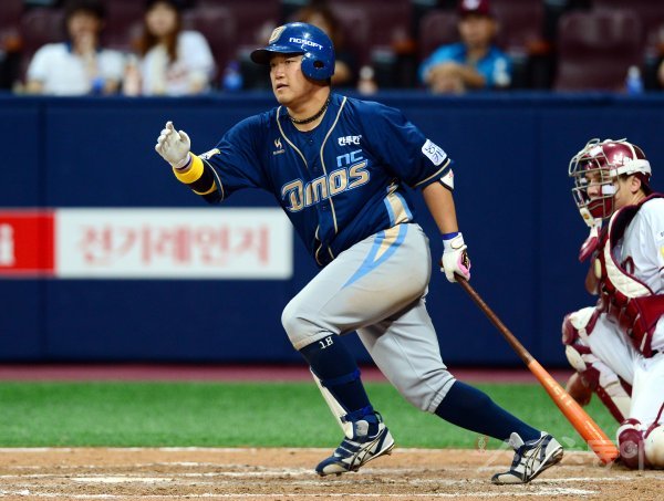 13일 서울 고척 스카이돔에서 ‘2017 타이어뱅크 KBO리그’ 넥센 히어로즈와 NC 다이노스의 경기가 열렸다. 3회초 2사 만루에서 NC 박석민이 2타점 적시타를 날리고 있다.